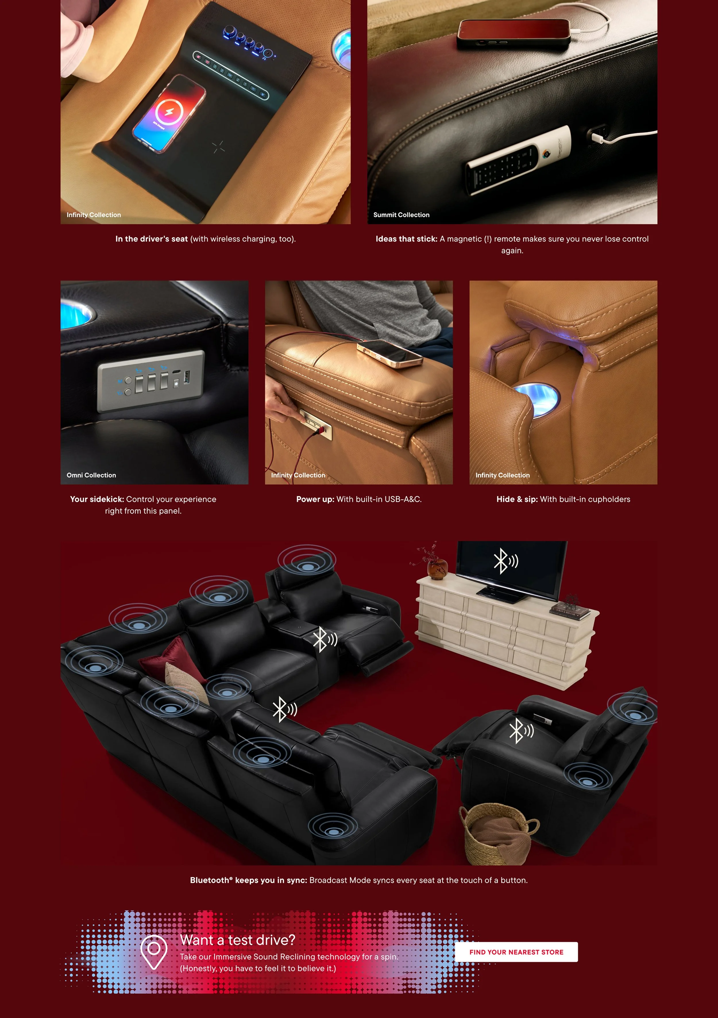 The brand needed a dedicated landing page to introduce its new immersive audio reclining line, clearly explain how the technology works, and help customers understand why it’s different from a standard recliner.