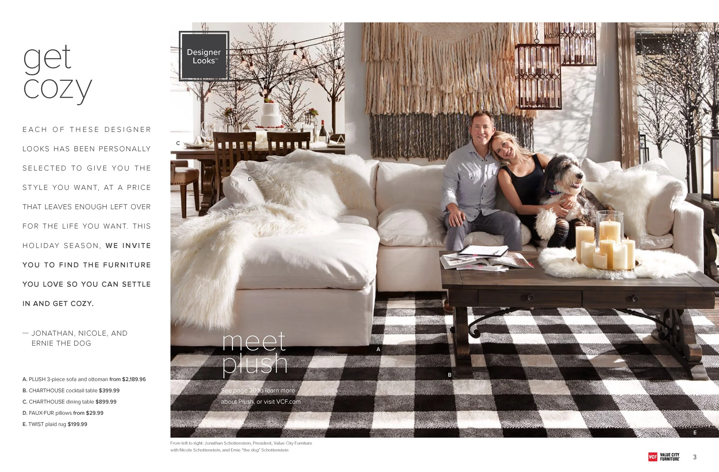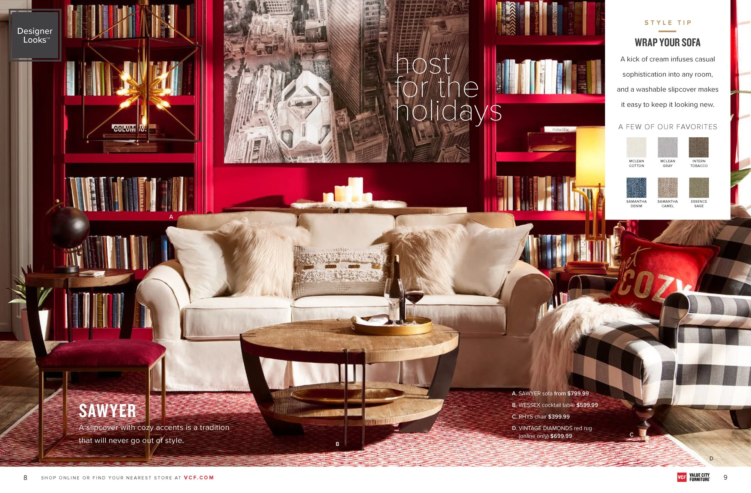 Create a modern, immersive, holiday-themed print piece that guides readers through color stories, room ideas, and curated assortments, making the Designer Looks collection feel inviting, engaging, and easy to explore.