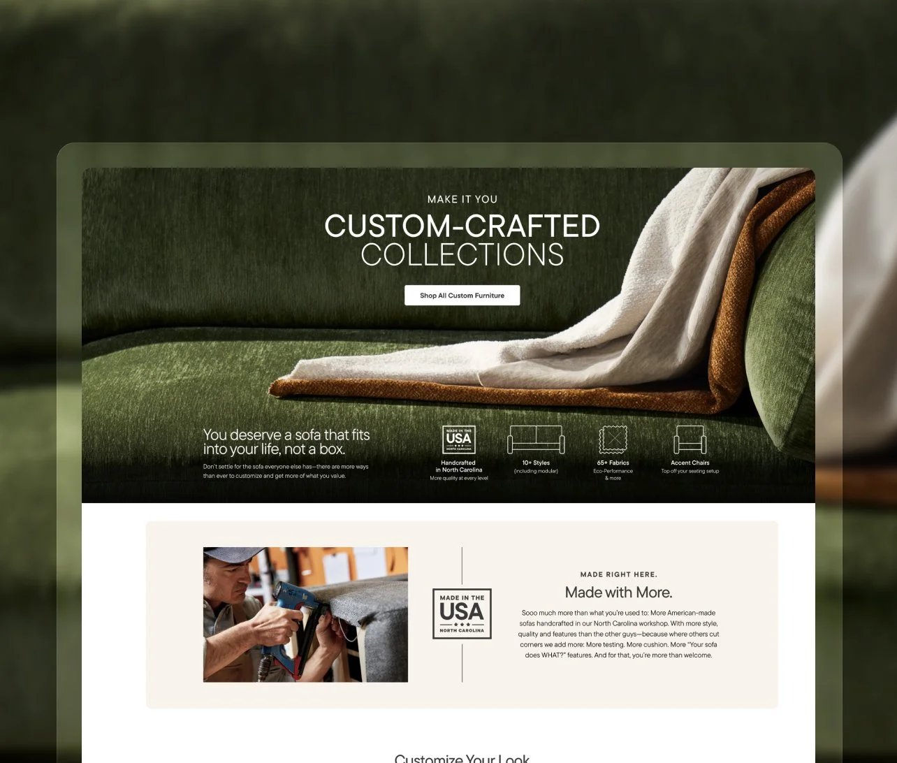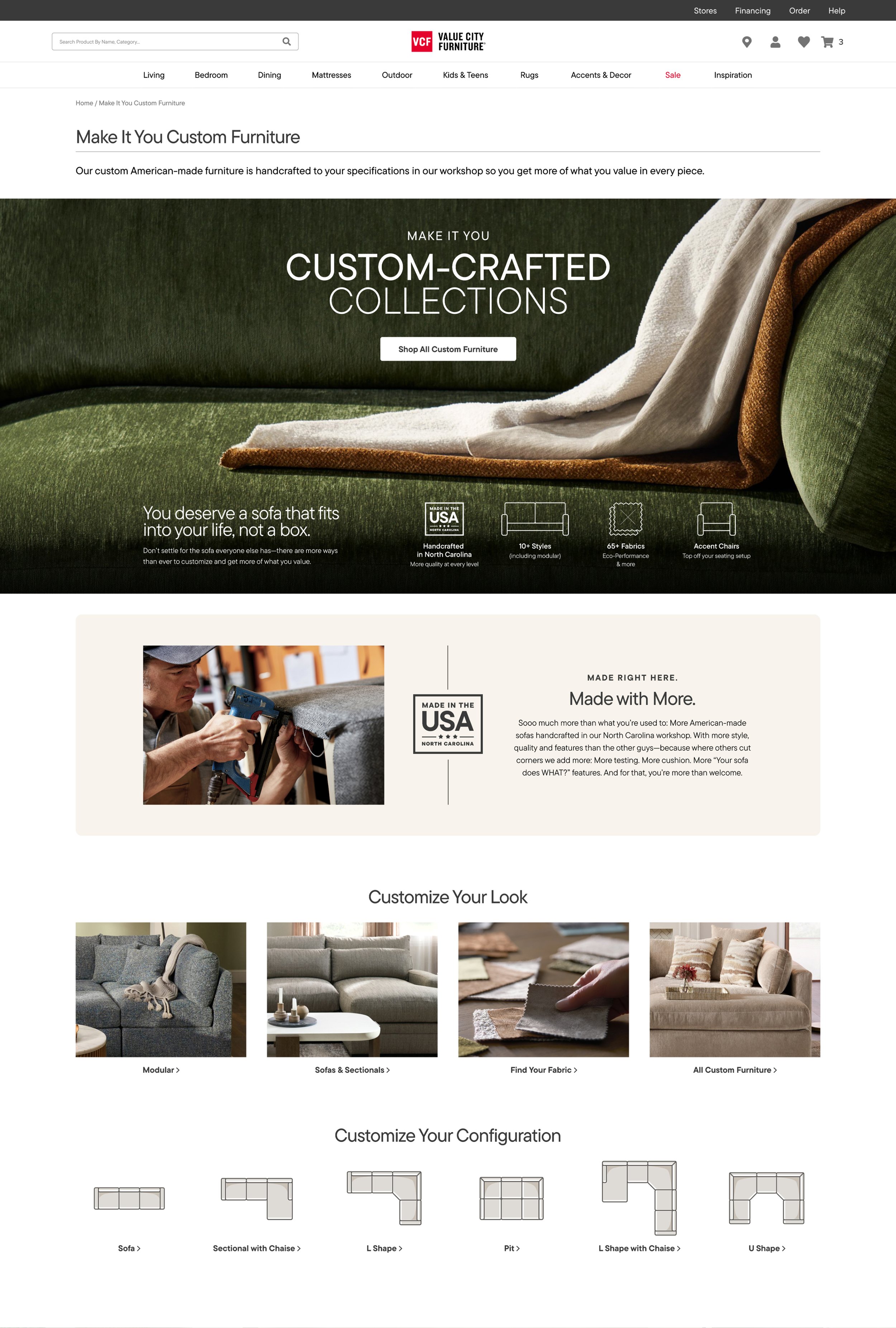 A custom, conversion-focused landing page that puts a made-in-America custom furniture line front and center—and makes it easy for shoppers to go from curious to clicking “buy.”
