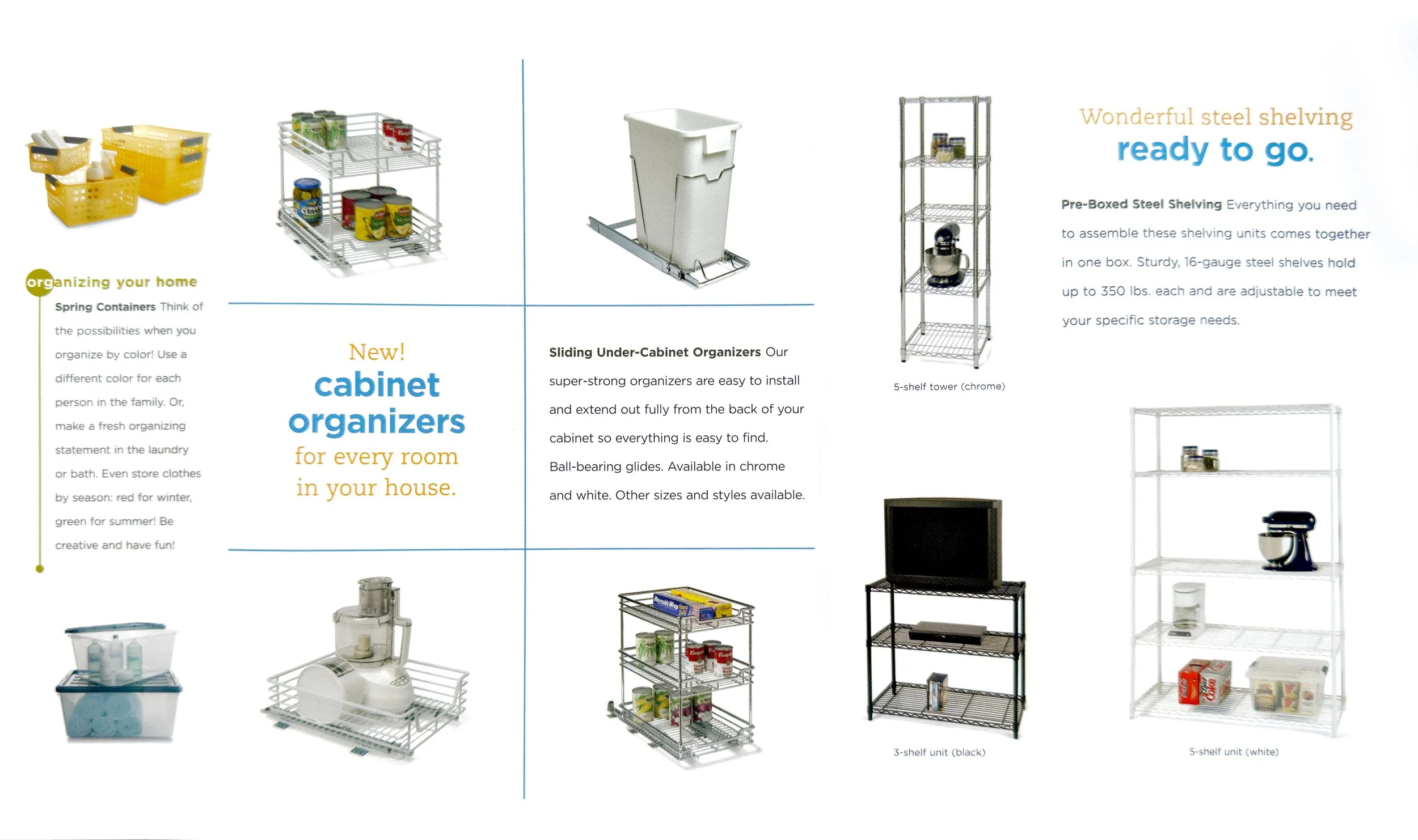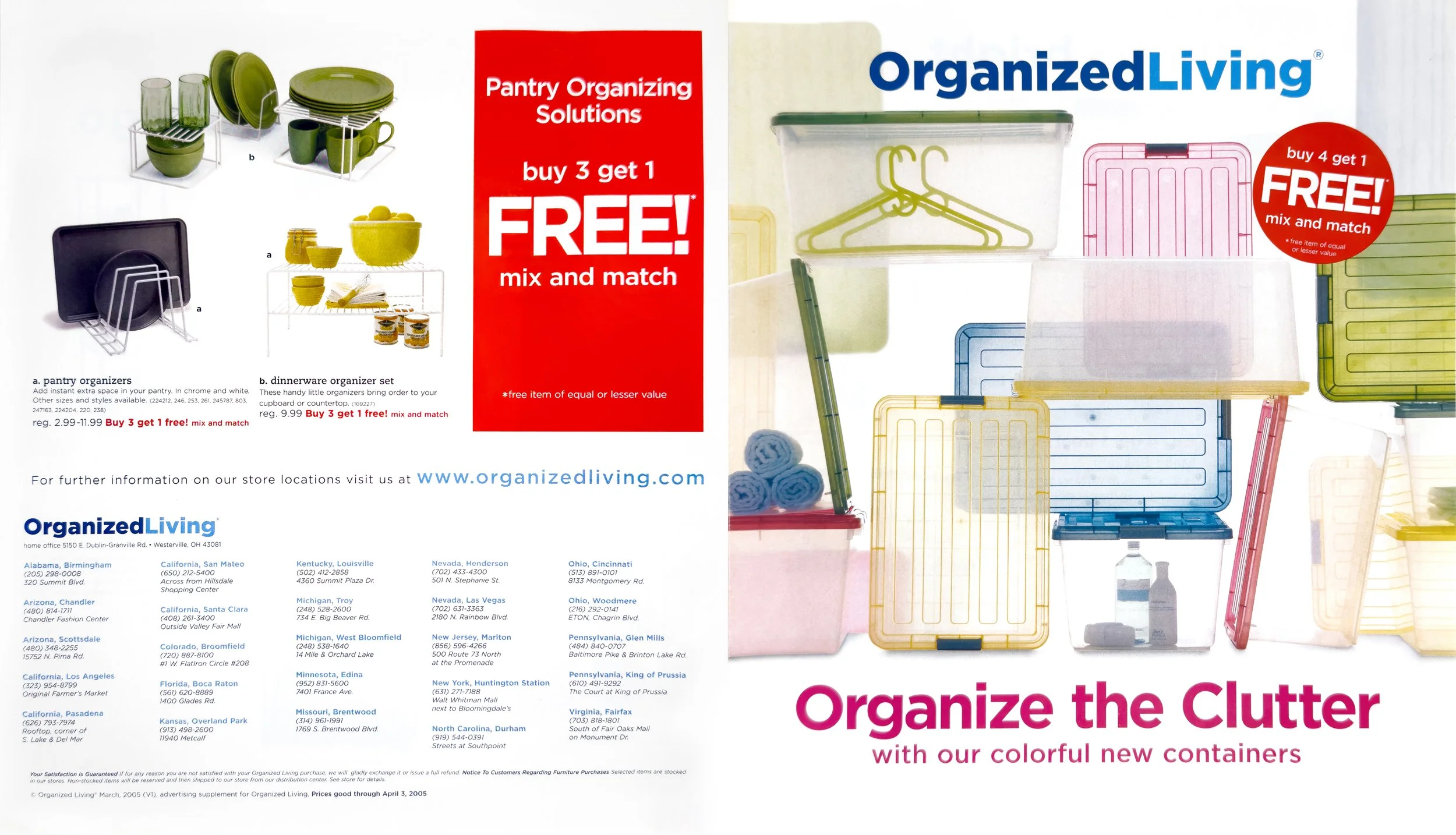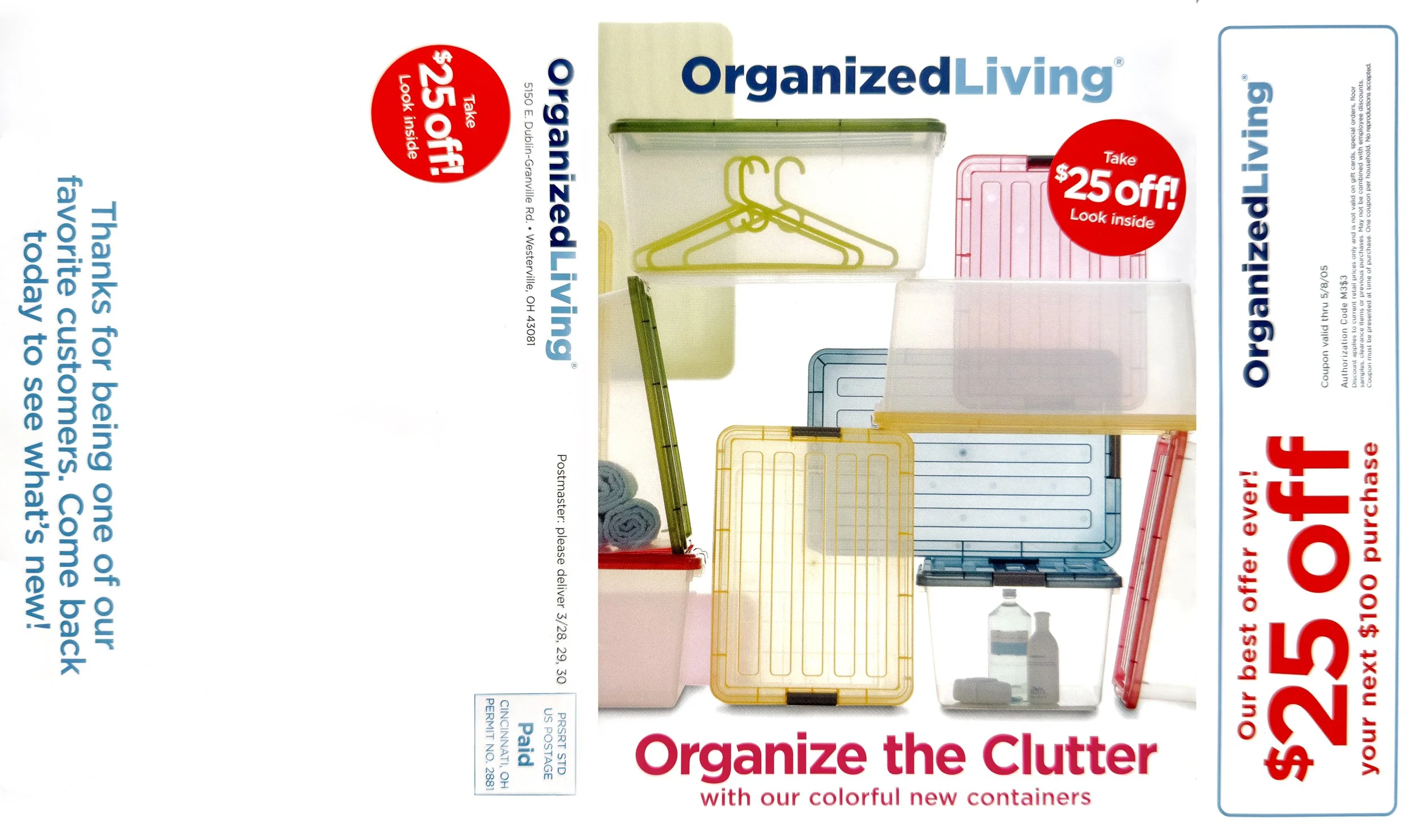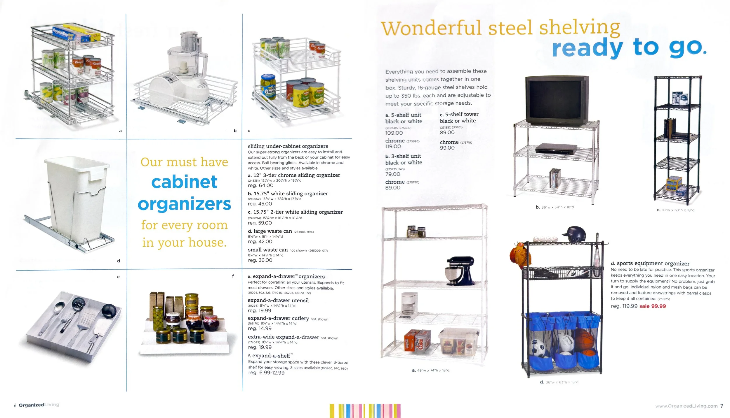 Create a compact circular and direct mail piece for the “Organize the Clutter” campaign that clearly communicates offers, uses colorful, on-brand visuals, and makes it easy for customers to scan products and savings at a glance.